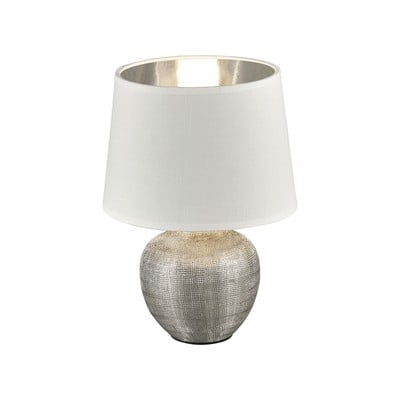 Stolní lampa LuxorS textilním stínidlem, látková/keramická, do zásuvky, bílá/ve stříbrné barvě, výška 26 cm