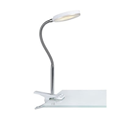 Stolní lampa FlexLED, s ohybatelnou konstrukcí/s klipem, s kovovým stínidlem, kovová/plastová, do zásuvky, bílá, výška 40 cm