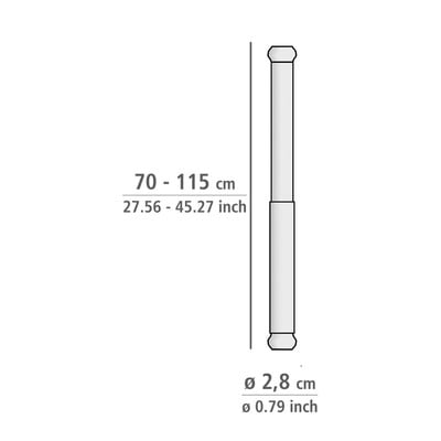 Tyč má nastavitelnou šířku od 70 do 115 cm lze upnout mezi dvě stěny pomocí plastových nástěnných adaptérů, které jsou součástí balení