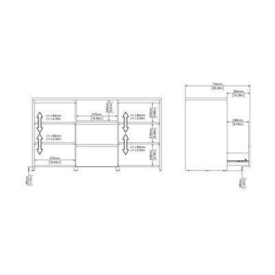Komoda Next od značky Tvilum spojuje skandinávský design s praktičností. Nabízí dva uzavřené prostory s nastavitelnými policemi, otevřenou polici a dvě prostorné zásuvky. Bílé prvky elegantně kontrastují s rámem v dekoru dubu. S extra hloubkou 48 cm poskytuje dostatek úložného prostoru.