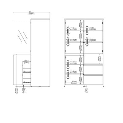 Disponuje třemi uzavřenými prostory s nastavitelnými policemi, z nichž jeden má skleněná dvířka pro vystavení oblíbených předmětů. Dále obsahuje otevřenou část pro snadný přístup a dvě prostorné zásuvky. Moderní vzhled s čistými liniemi se hodí do různých interiérů, zatímco hloubka 48 cm zajišťuje dostatek místa pro uložení bez zabírání zbytečného prostoru v místnosti.