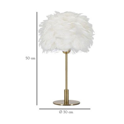 Stolní lampa Ball Feather od značky Mauro Ferretti. Nadýchané stínidlo z peří jí dodává jedinečný a jemný vzhled.
