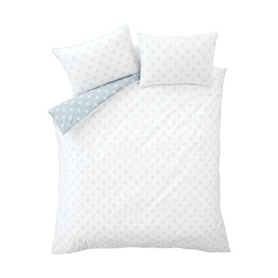 Na jednolůžko, na knoflíky, oboustranné, bavlněné, s květinovým vzorem, bílé/modré, 135x200 cm