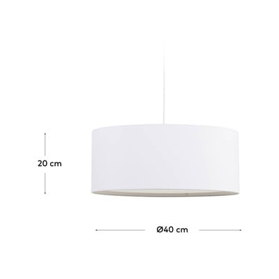 Bílé stínidlo Santana o průměru 40 cm od značky Kave Home je vyrobeno z bílé látky a doplněno bílým difuzorem, který zjemňuje a rozptyluje světlo. Minimalistický design v čistě bílé barvě se snadno kombinuje s různými styly interiérů. Pro montáž je nutné dokoupit závěsný kabel, skvěle bude ladit s kabely z kolekce Fulvia a Kaede.
