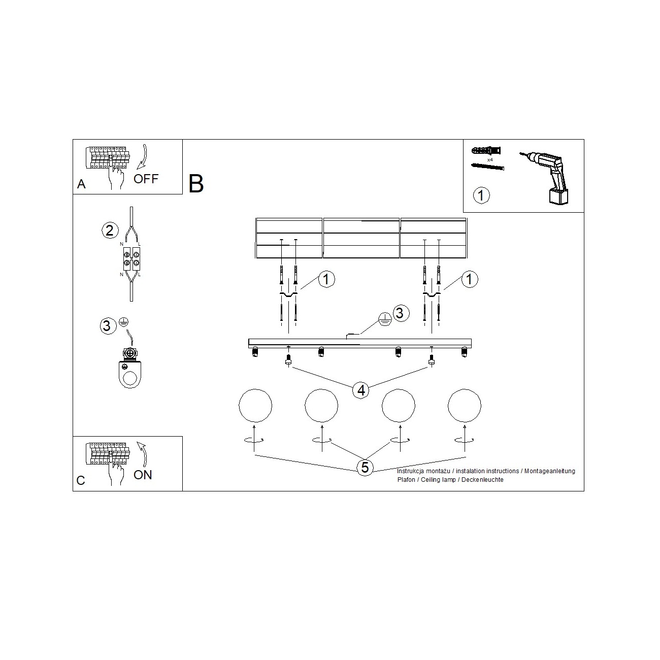 Stropní svítidlo Umerta od značky Sollux. Nabízí čistý design s kulatými skleněnými stínidly pro rovnoměrné osvětlení.