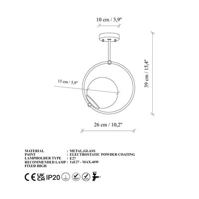 Svítidlo Dolunay od značky Opviq lights je elegantní a stylový doplněk do vašeho interiéru. Toto stropní svítidlo se skleněným stínidlem dodá vašemu domovu moderní vzhled.