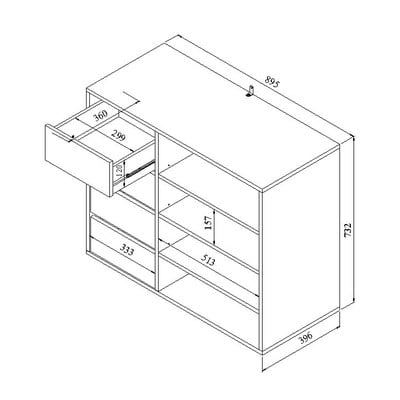 Otevřená, z dřevotřísky, povrchová úprava: melamin, bílá/hnědá/v přírodní barvě, šířka 185 cm, výška 182 cm, hloubka 50 cm