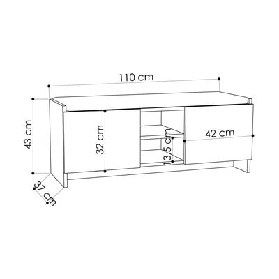 S lavicíZ MDFPovrchová úprava: melaminBílý/černýPočet párů bot 10 Šířka 110 cmVýška 43 cmHloubka 37 cm