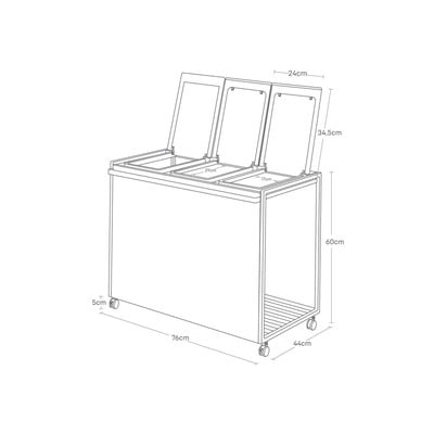 Třídílný koš je praktickým pomocníkem v třídění odpadu. Je vybaven kolečky s rukojetí pro