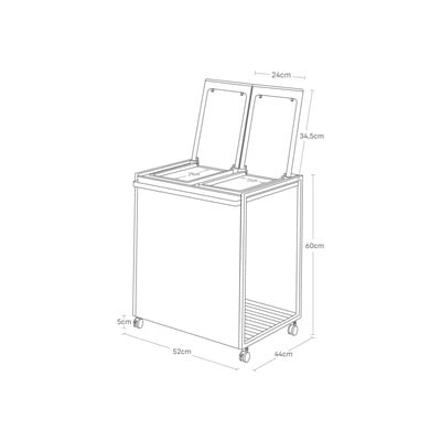 Dvoudílný koš je praktickým pomocníkem v třídění odpadu. Je vybaven kolečky s rukojetí pro