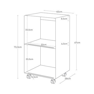 Pojízdný regál TowerKovový, bílý, šířka 40 cm, výška 73 cm, hloubka 38 cm