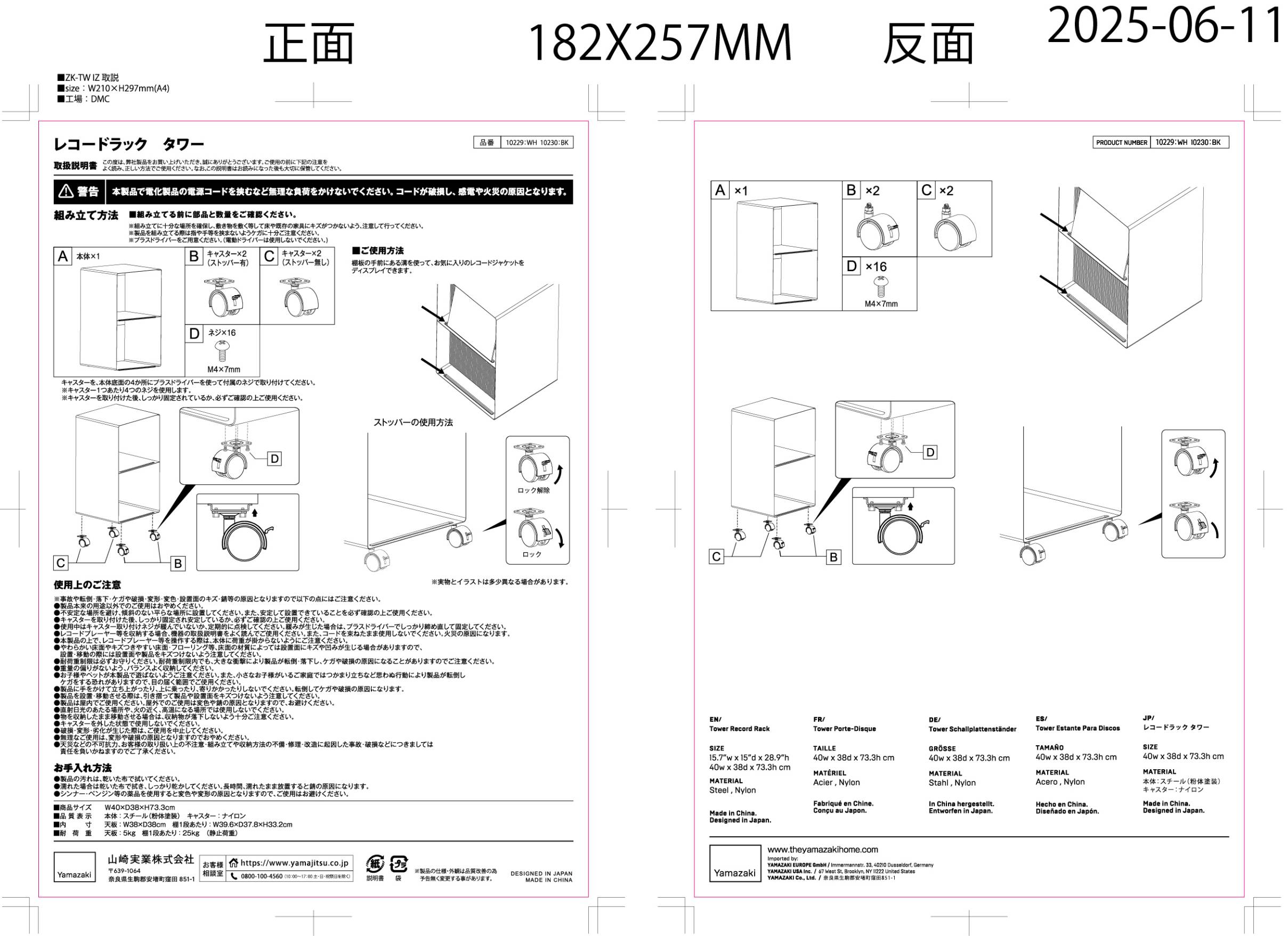 Pojízdný regál Tower od značky YAMAZAKI je praktickým doplňkem do každé místnosti. Tento kovový regál s rozměry 40 x 38 x 73 cm (šířka x hloubka x výška) je ideální pro úhledné uspořádání LP desek.