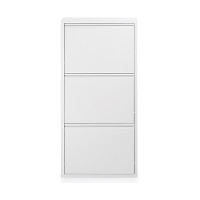 Tento bílý botník Kave Home Rox je štíhlý a zároveň velmi prostorný. Díky vyklápěcímu systému celkem 3 dvířek poskytuje místo pro uskladnění všech vašich oblíbených párů a zároveň nezabírá mnoho místa. Botník je vyroben z odolného kovového materiálu. V zadní části najdete také otvory pro bezpečné upevnění ke zdi.
