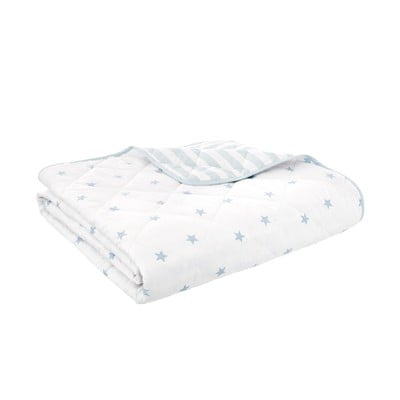 Bílý/modrý bavlněný prošívaný dětský přehoz 135x190 cm Mini Star & Stripes – Bianca
