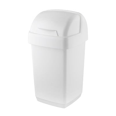 Odolná konstrukce a moderní design, dobře udržovatelný povrch. Snadno se používá a zasunovací víko může zůstat otevřené i tam, kam by se koš s klasickým víkem vešel jen těžko. Objem 10 l.