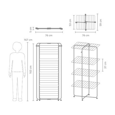 Sušák na prádlo HangOn Tower od značky Brabantia. Nabízí spoustu místa pro sušení prádla a díky kolečkům ho snadno přesunete.