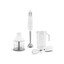 Součástí balení je bohatá sada příslušenství, která z mixéru dělá multifunkčního pomocníka. Najdete zde sekáček s nádobou o objemu 0,5 l pro sekání bylinek, ořechů nebo zeleniny, dále mixovací nádobu o objemu 1,4 l s odměrkou a víkem. Nechybí ani šlehací metla z nerezové oceli pro šlehání bílků či smetany a nástavec na pyré pro snadné pasírování ovoce a zeleniny. Většinu příslušenství navíc můžete mýt v myčce, což usnadňuje údržbu.