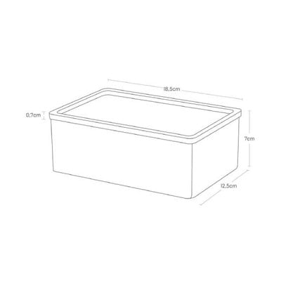 Úložný box od značky Yamazaki spolehlivě uloží všechny vaše nezbytnosti. Má robustní korpus z materiálu polystone (plastová pryskyřice s přísadou práškového kamene) a dřevěné víčko, které slouží zároveň jako odkládací miska.