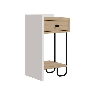 Bílý/v přírodní barvě noční stolek v dekoru dubu s poličkami Mercure – Marckeric