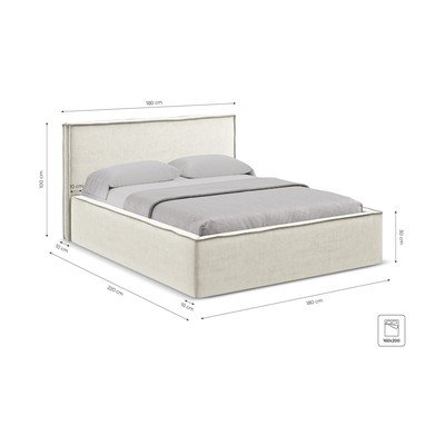 Krémová čalouněná dvoulůžková postel s úložným prostorem s roštem 160x200 cm Anani – Makamii