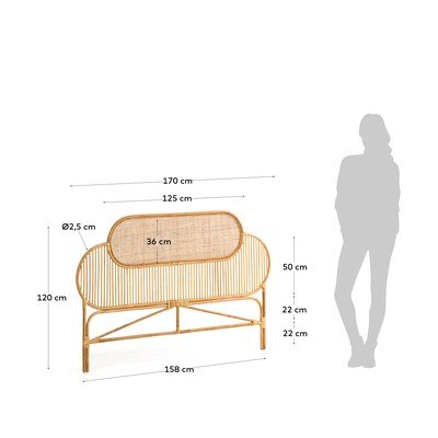 Čelo postele LalitaRatanové, povrchová úprava: lak, volně stojící, v přírodní barvě, 170x120 cm