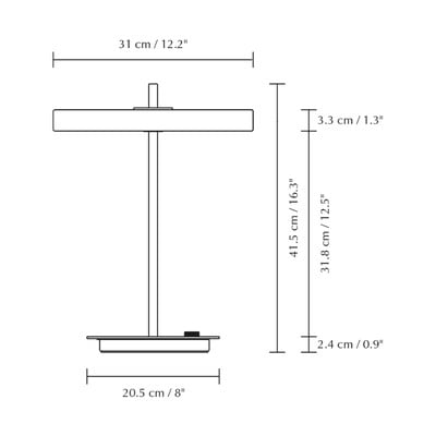 Stmívatelná stolní lampa Asteria Table od značky UMAGE v sobě spojuje eleganci a funkčnost. Kovové stínidlo v černé barvě doplňuje mosazný prvek procházející jeho středem. Svítidlo je vybavené integrovaným LED panelem s difuzérem, který zajišťuje příjemné měkké osvětlení. Lampa má zabudovaný USB port pro nabíjení telefonu, který je možné používat i při zhasnutém světle.