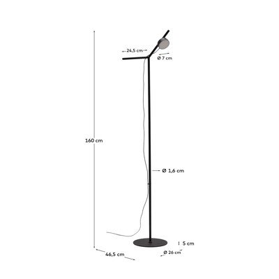 Stojací lampa Orey od značky Kave Home. Inovativní systém s magneticky nastavitelným LED světelným bodem umožňujenpřizpůsobení osvětlení.