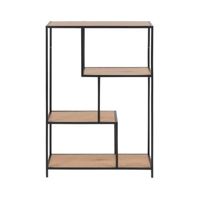 Pro kolekci Seaford je typická vzhledově subtilní kovová konstrukce v černé barvě. Ta je v tomto případě doplněna o police v dekoru divokého dubu.