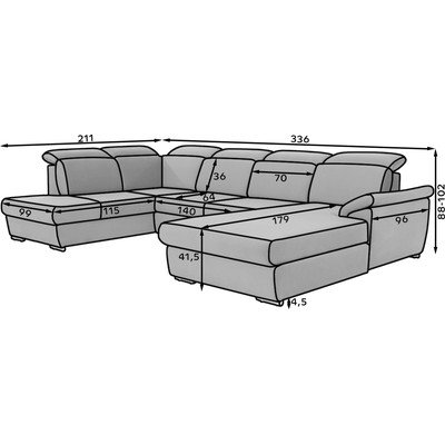 Polohovací/rozkládací, levý roh/do "U", černá, vícemístná, šířka 336 cm
