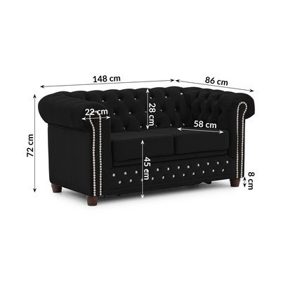Sametová, rozkládací, chesterfield, černá, voděodolná/odolné vůči skvrnám, dvoumístná, šířka 148 cm