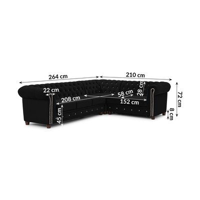 Sametová, rozkládací, chesterfield, pravý roh/do L, černá, voděodolná/odolné vůči skvrnám, čtyřmístná, šířka 264 cm