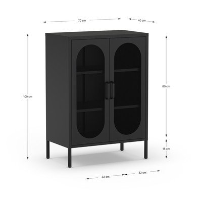 Kovová, povrchová úprava: práškový lak, černá, šířka 70 cm, výška 100 cm, hloubka 40 cm