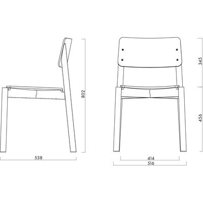 Sedák a opěradlo jsou vyrobeny z tvarované překližky s bukovou dýhou. Pevné nohy tvoří masivní bukové dřevo, což zajišťuje stabilitu a odolnost.
