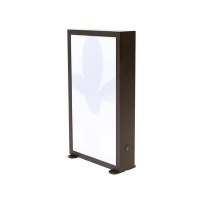 Dobré vědět: Lampa je vyrobena z MDF desky v dekoru tmavého dubu. V hliníkovém rámu jsou poté zasazena dvě akrylová skla s průhledností 50% a 74%.