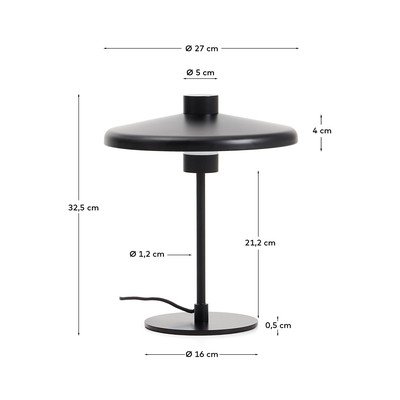 Stolní lampa Nuvira od značky Kave Home zaujme svým elegantním a funkčním designem. Její konstrukce z matné oceli dodá každé místnosti moderní a sofistikovaný nádech. Lampa má výrazné ploché kruhové stínidlo a štíhlý stojan s kulatou základnou.