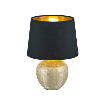 Stolní lampa LuxorS textilním stínidlem, látková/keramická, do zásuvky, modrá/ve zlaté barvě, výška 26 cm