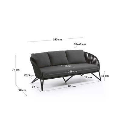 Zahradní pohovka BranzieTrojmístná, černá, nosnost 320 kg, šířka 180 cm, výška 77 cm, hloubka 90 cm