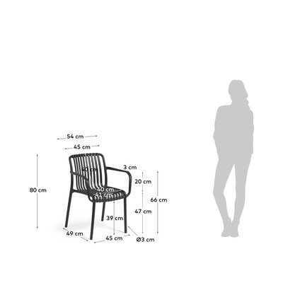 Zahradní židle IsabelliniPlastová, stohovatelná, černá, nosnost 130 kg, šířka 54 cm, výška 80 cm, hloubka 49 cm