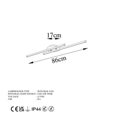 LED, kovové, černé, 10x86 cm, výška 5 cm