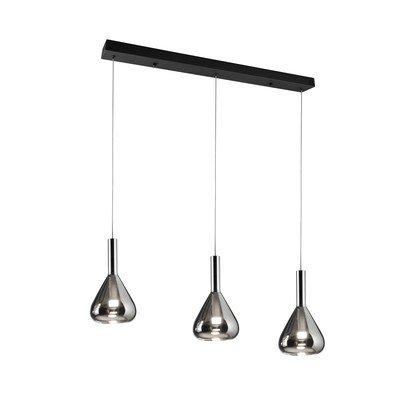 Závěsné svítidlo CiperaLED, se skleněným stínidlem, kovové, černé, 20x100 cm, výška 200 cm