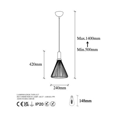 S kovovým stínidlem, kovové, černé, ø 24 cm, výška 42 cm