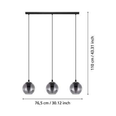 Se skleněným stínidlem, kovové, černé, 16,5x76,5 cm, výška 110 cm