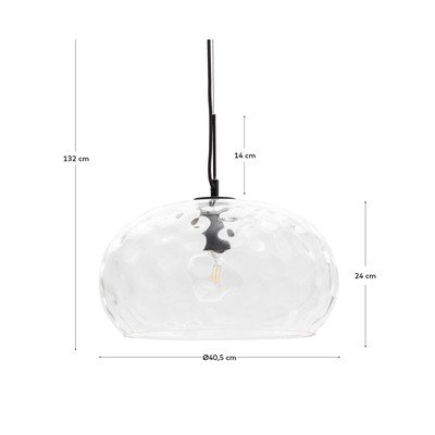 Závěsné svítidlo Balma od značky Kave Home zaujme svým jednoduchým, ale elegantním designem. Stínidlo o průměru 40 cm je vyrobeno z čirého skla s texturovaným povrchem, který vytváří zajímavé světelné efekty. Svítidlo je kompatibilní s žárovkou typu E27 s maximálním výkonem 40 W. Žárovka není součástí balení.
