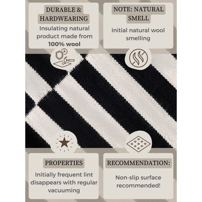 Koberec je silně cítit vlnou - doufejme, že po několika týdnech vyvětrá. Vyplatí se také koupit podložku, protože je poměrně tenká.
