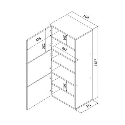 V dekoru dubu, z dřevotřísky, povrchová úprava: melamin, černý/v přírodní barvě, šířka 50 cm, výška 119 cm, hloubka 33 cm, …