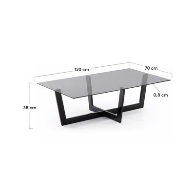 Konferenční stolek PlamSe skleněnou deskou, černý, 70x120 cm, výška 38 cm