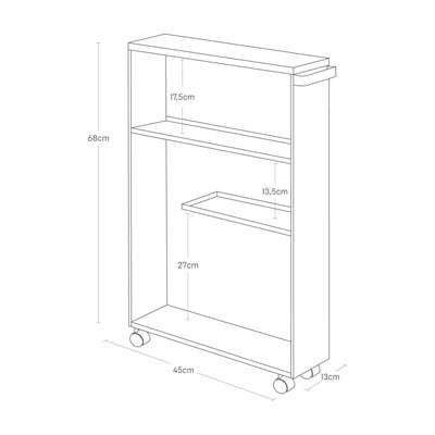 Příkladem je i tento elegantní pojízdný regál z kolekce Tower, který je ideálním pomocníkem nejenom do prostoru koupelny. Jeho konstrukce je vyrobena z odolného lakovaného kovu a nabízí prostor pro odkládání sanitárních potřeb, kosmetiky či prostředků pro úklid. Vrchní stranu tvoří deska z bukového dřeva, která celku dodává jedinečný charakter.