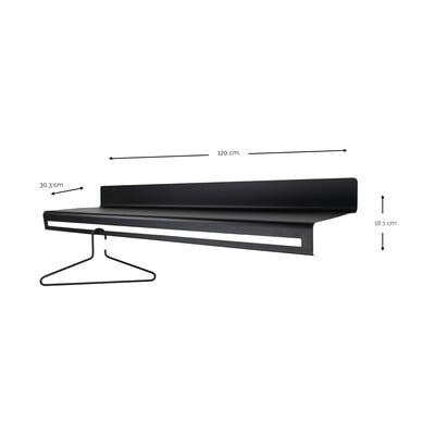 S poličkou, kovový, černý, šířka 120 cm, výška 18 cm, hloubka 30 cm