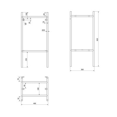 Kovový, povrchová úprava: barva, černý, šířka 40 cm, výška 82 cm, hloubka 36 cm
