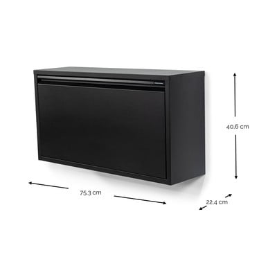 Výklopný/závěsný, kovový, povrchová úprava: práškový lak, černý, počet párů bot 6 , šířka 75 cm, výška 41 cm, hloubka 22 cm